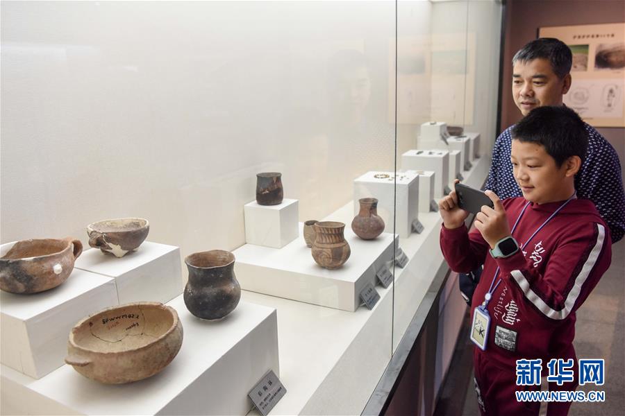 10月5日,参观者在乌鲁木齐市博物馆参观。 国庆假期,新疆乌鲁木齐天气晴好,人们纷纷走出家门,以不同方式度过多彩假期。 新华社记者 丁磊 摄