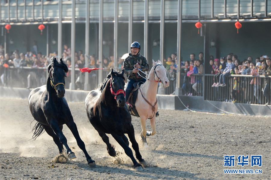 游人在新疆古生态园汗血马基地观赏马术表演(10月4日摄)。 国庆假期,新疆乌鲁木齐天气晴好,人们纷纷走出家门,以不同方式度过多彩假期。 新华社记者 丁磊 摄