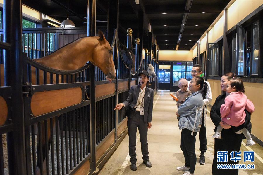 游人在新疆古生态园汗血马基地参观(10月1日摄)。 国庆假期,新疆乌鲁木齐天气晴好,人们纷纷走出家门,以不同方式度过多彩假期。 新华社记者 丁磊 摄
