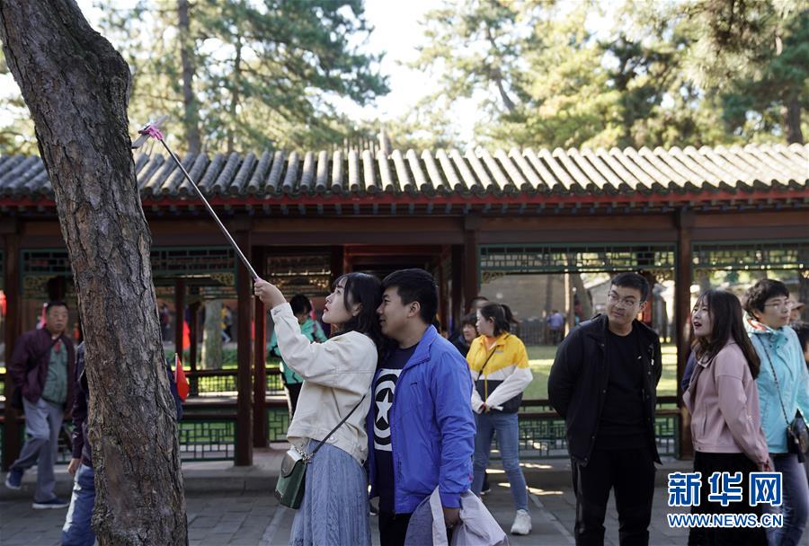 10月5日,游客在承德避暑山庄游览。 国庆假期,不少游客来到河北承德避暑山庄,享受休闲时光。 新华社记者 金良快 摄