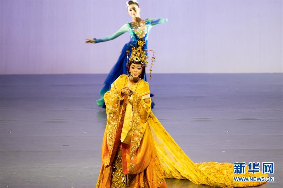 这是10月5日在泰国曼谷拍摄的《昭君出塞》演出。 当晚,应第21届曼谷国际舞蹈音乐节邀请,中国演员李玉刚将其2019年全新作品《昭君出塞》在曼谷的泰国文化中心呈现给泰国观众。 新华社发