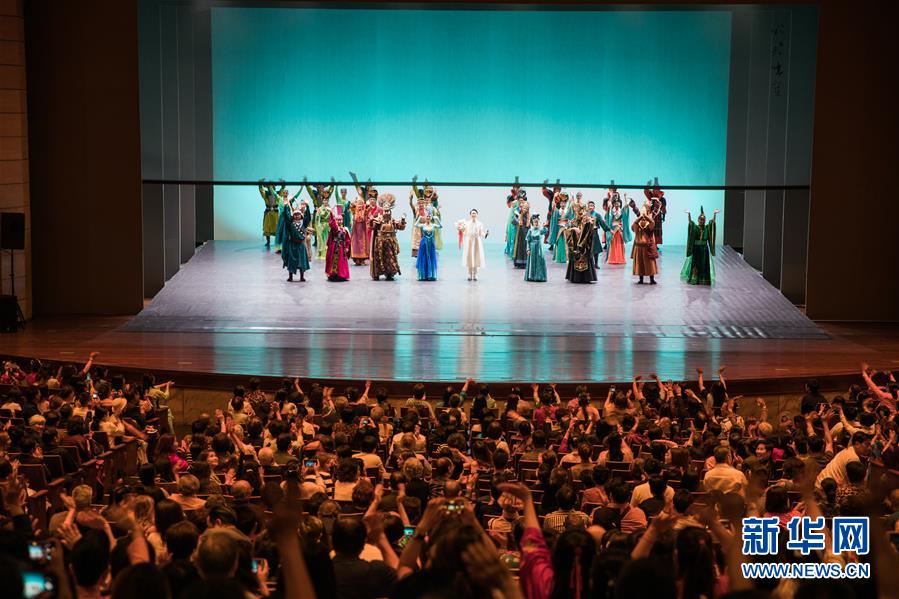 10月5日,在泰国曼谷,《昭君出塞》主演李玉刚(中)带领演员谢幕。 当晚,应第21届曼谷国际舞蹈音乐节邀请,中国演员李玉刚将其2019年全新作品《昭君出塞》在曼谷的泰国文化中心呈现给泰国观众。 新华社发