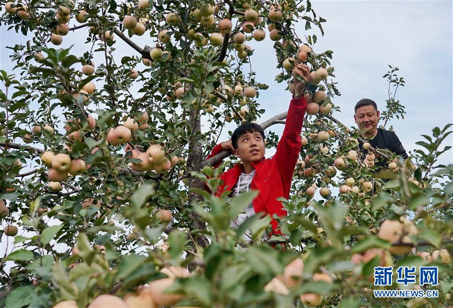 10月6日,游客在河北省迁安市杨各庄镇西新庄村的果园采摘苹果。 当日是国庆长假第六天,各地群众以不同方式度过多彩假期。 新华社记者杨世尧摄