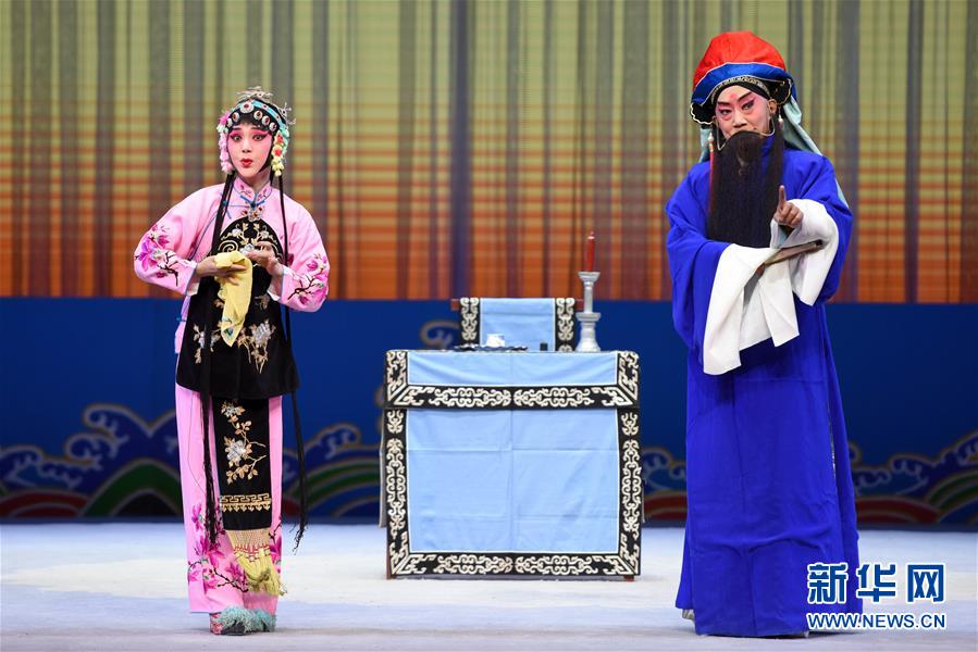 10月6日,乌鲁木齐市京剧团演员在京剧《游龙戏凤》的表演中。新华社记者 丁磊 摄