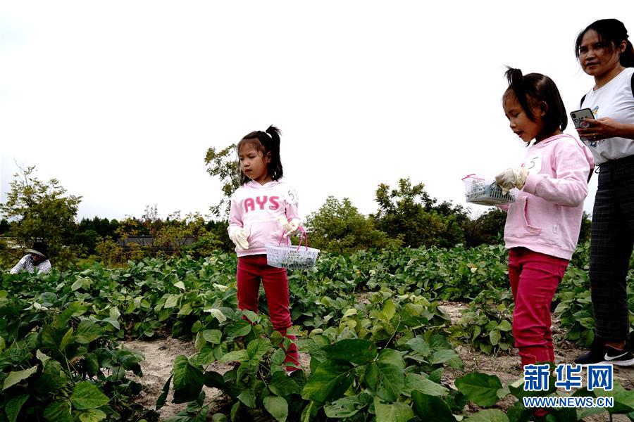 10月6日,小朋友在上海辰山植物园参加采摘活动。 国庆长假期间,人们走出家门乐享假期。 新华社记者 张建松 摄