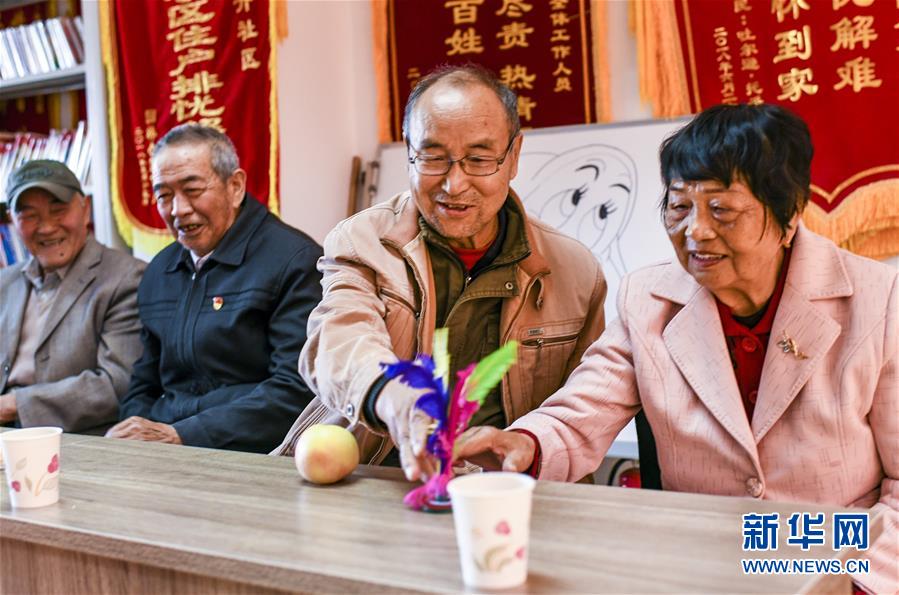 10月7日,乌鲁木齐市水磨沟区新民路片区管委会鸿升社区老人在做游戏。 新华社记者王菲摄