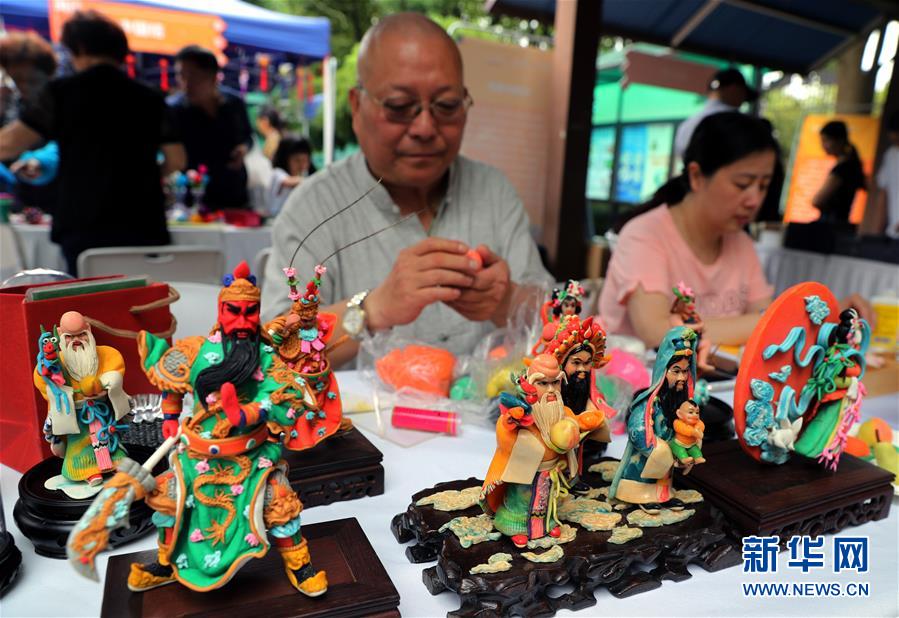 10月7日,在上海市闵行区颛桥镇田园公园,艺人在进行非遗技艺展示——捏面人。新华社记者刘颖摄