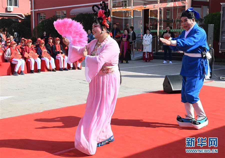 10月7日,在北京市平谷区温暖之家老年公寓,演员表演戏曲节目。新华社发(任超摄)