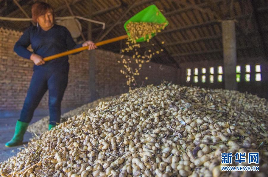10月7日,在河北省枣强县枣强镇刘旸后村,村民展示存放的花生。 新华社记者李晓果摄