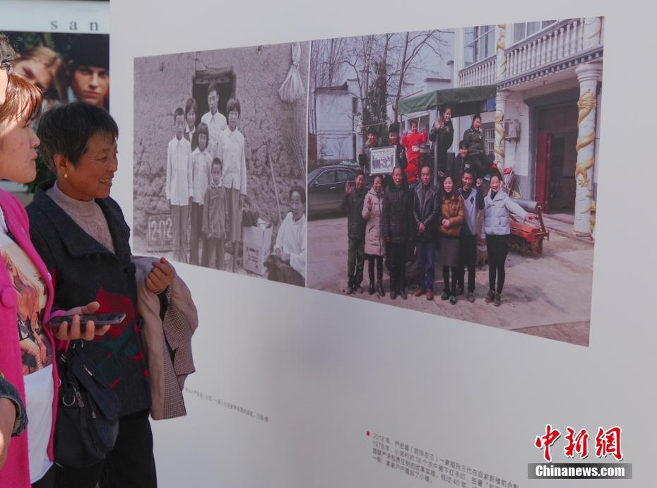 10月8日,庆祝中华人民共和国成立70周年摄影展“中国人家”在北京王府井大街正式亮相。本次展览由中国文联、中国摄协、北京市东城区委、区政府共同主办。展览集纳了新中国成立以来的近300幅历史照片和摄影作品,分为“国”和“家”两个单元集中展示。中新社记者 贾天勇 摄