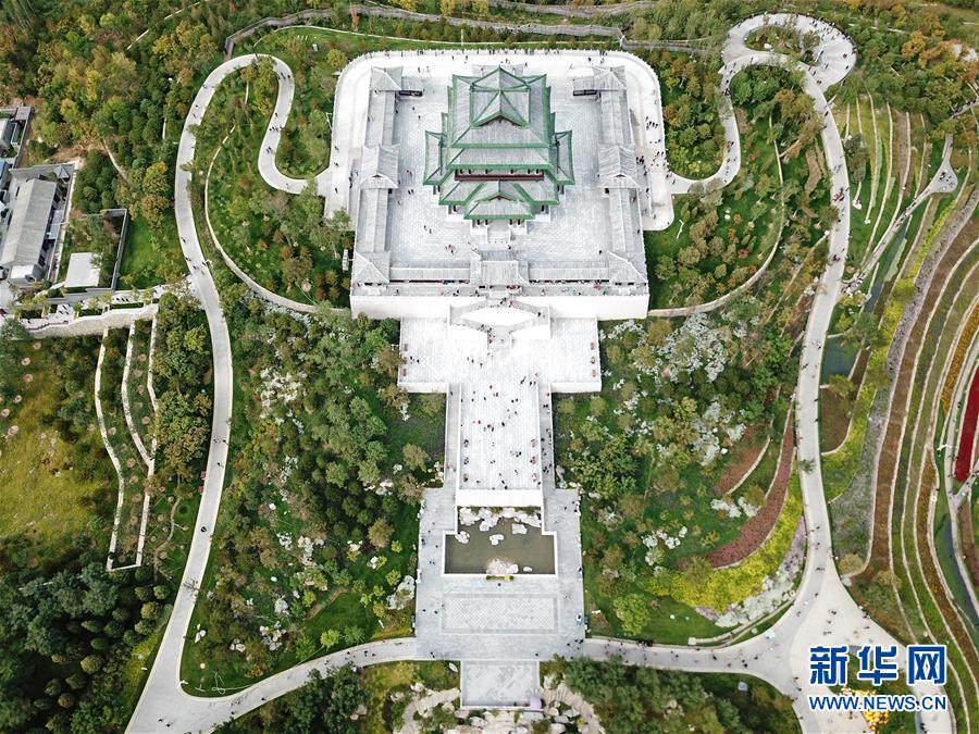 北京世园会园区内的永宁阁(10月6日无人机拍摄)。新华社记者 才扬 摄