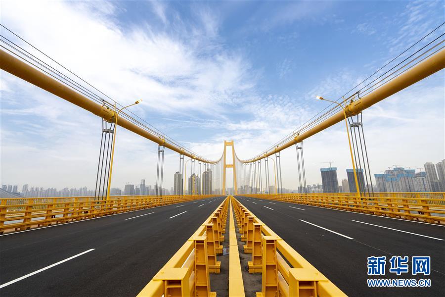 武汉杨泗港长江大桥(9月25日摄)。 10月8日,长江上首座双层公路大桥——武汉杨泗港长江大桥正式投入使用。杨泗港长江大桥全长4.13公里,主跨1700米,一跨过长江。大桥上层为城市快速路,双向6车道,设计行车时速80公里;下层为城市主干道,双向6车道,设计行车时速60公里。 新华社记者熊琦摄