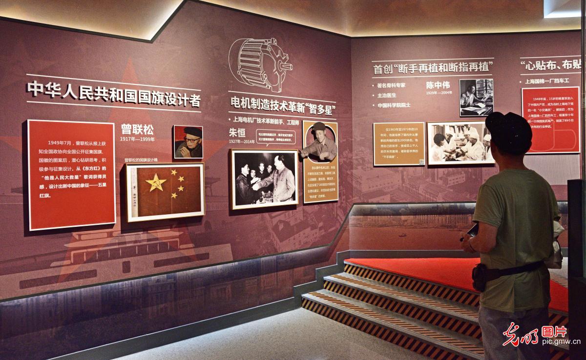 2019年9月29日,观众在上海工匠馆观看展览。日前,全国第一个5G信号覆盖的现代展馆上海市工人文化宫一楼的"上海工匠馆"正式对外开放。该馆以"时代、人物、技艺、成果"为展示要素,以实物、模型、多媒体、互动等展示方式,展示了150余件实物或模型,讲述了从古至今的百余位上海工匠故事。(周东潮摄/光明图片)