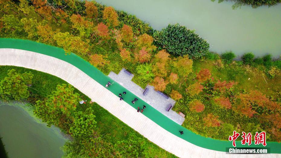 秋日的运河三湾风景区层林尽染,五彩斑斓。孟德龙 摄