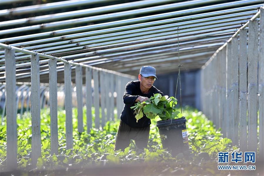 10月8日,农民在天津市西青区辛口镇种植沙窝萝卜的大棚内劳作。 近年来,沙窝萝卜已经成为天津市西青区辛口镇的一张特色农业名片。随着乡村振兴战略的深入实施,辛口镇积极推进沙窝萝卜的标准化生产、销售渠道整合、品牌提升保护等工作,壮大萝卜产业,发展农产品深加工、旅游观光、采摘项目等,真正将沙窝小萝卜变成富民大产业。 新华社记者李然摄