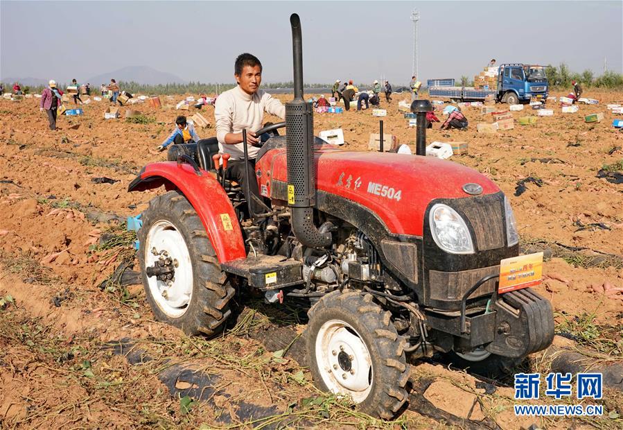 10月8日,高清喜在田间驾驶拖拉机。 河北省卢龙县石门镇农民高清喜2011年引进鲜食型红薯新品种,试种成功后开始逐年扩大种植面积,如今红薯种植面积约2500亩,年产优质鲜食型红薯500多万公斤。高清喜也成为当地有名的“红薯状元”,带动周边200多名村民实现稳定就业,致富增收。 新华社记者 杨世尧 摄