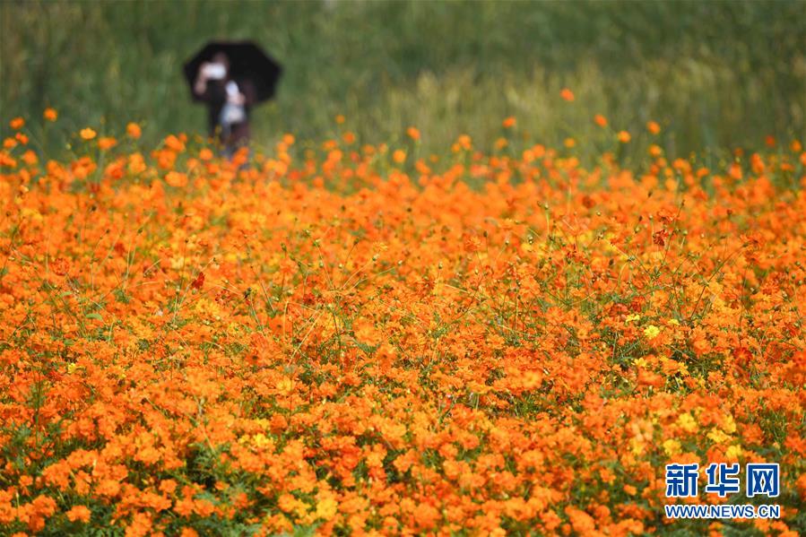 10月9日,游人在四季花海城市公园拍照。 秋日时节,位于安徽省合肥市的四季花海城市公园花香四溢,色彩缤纷,成为游客和市民休闲游玩的好去处。 新华社记者 张端 摄