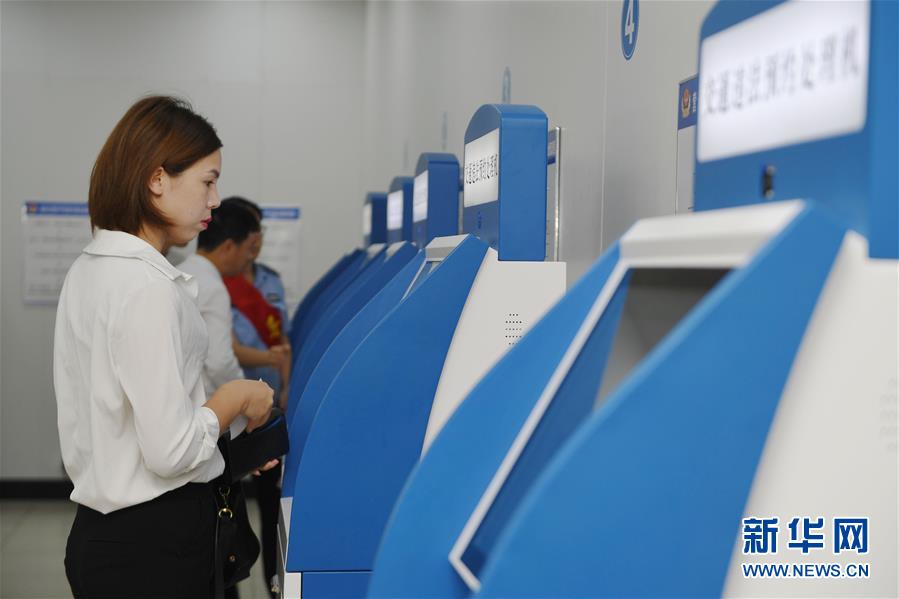 10月10日,市民在福州交警支队鼓楼大队交通业务自助办理区办理业务。 今年以来,福建福州交警在基层窗口大力推广自主研发的交通违法自助处理系统。市民通过交通业务自助处理设备或手机APP软件,可以便捷处理交通违法等业务。系统投入使用9个月以来,窗口日均处理能力提升了六成,累计服务市民约1700万人次,大大提升办事服务效率,受到群众欢迎。 新华社记者 宋为伟 摄