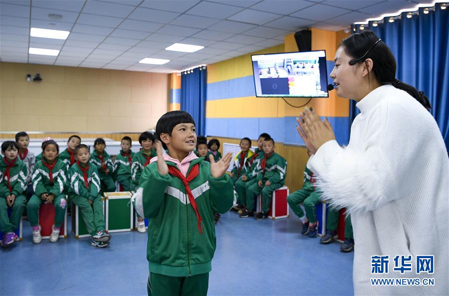 10月9日,宁夏固原市泾源县泾河源镇白面民族小学师生在课堂教学的同时,与当地高峰村、白吉村教学点的学生进行网络在线互动。 新华社记者冯开华摄