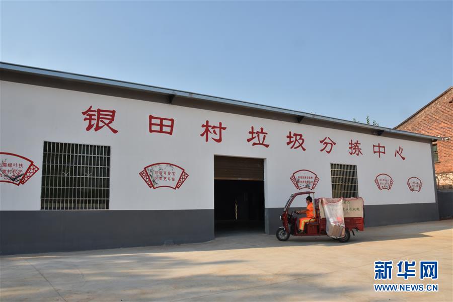 9月28日,湖南省韶山市银田镇银田村保洁员朱雪纯将收集好的一车垃圾运到垃圾分拣中心。 新华社记者 白田田 摄