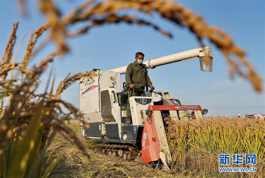 10月9日,唐山海港经济开发区王滩镇村民驾驶收割机收获水稻。 记者从河北省农业农村厅获悉,截至目前,该省秋粮收获面积已过七成。今年河北省秋粮种植面积达6190万亩。 新华社记者 杨世尧 摄
