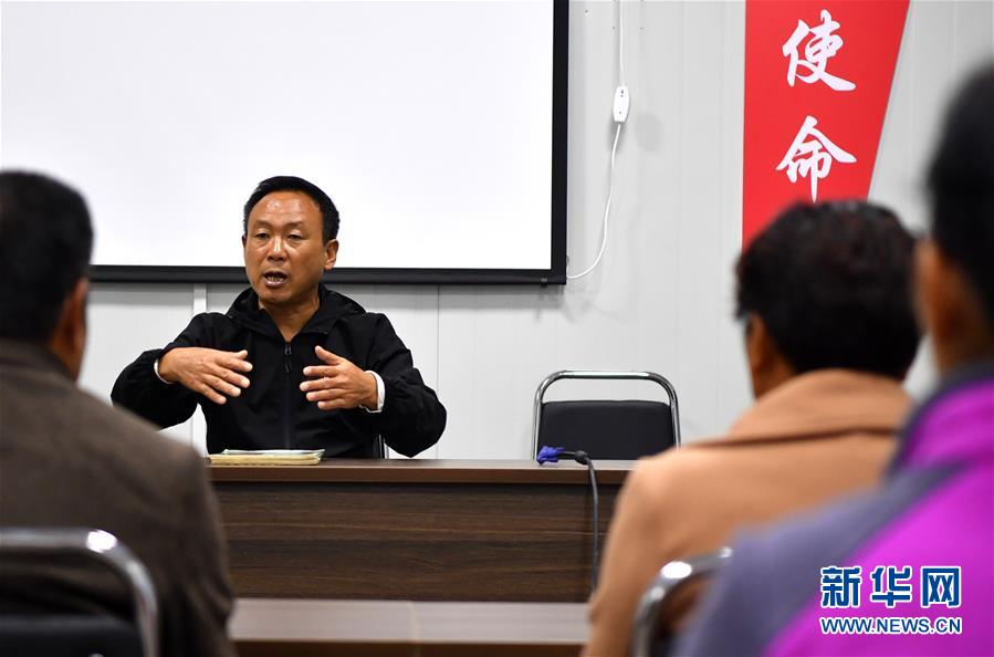 10月9日,在河南省洛宁县马店镇关庙村,李应贤为当地村民讲解果树种植技术。新华社记者李嘉南摄