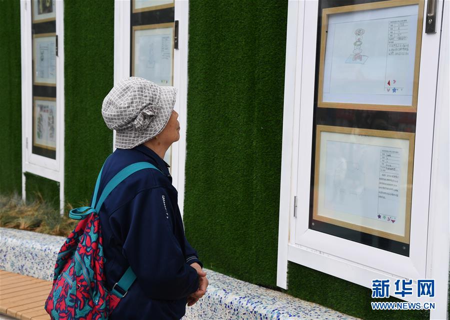 10月10日,市民在观看小学生的城市更新项目设计稿。 当日,北京紫竹院街道小学生参与城市更新项目的成果亮相。从2018年11月开始,北京市海淀区紫竹院街道开启“规划有你更精彩”城市设计公众参与活动,率先引导小学生加入街区责任规划工作行列。2019年5月,该街道启动小学生雕塑参与式设计活动,征集雕塑设计稿。通过作品筛选,19名学生进入第二批次名单,经过造型、立意、材质等专业培训,他们参与了从平面到立体的塑造工作。 新华社发(任超摄)