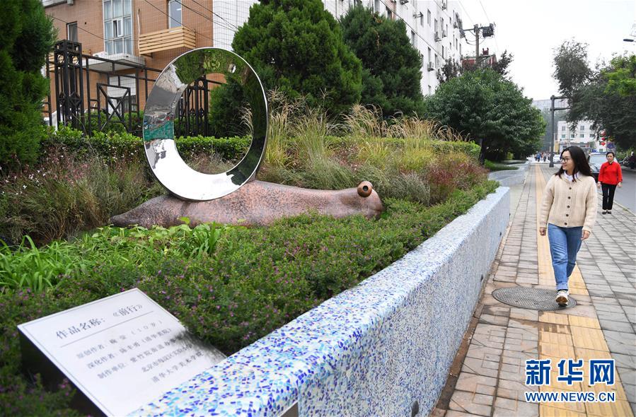 10月10日,行人经过由小学生原创设计的雕塑《前行》。 当日,北京紫竹院街道小学生参与城市更新项目的成果亮相。从2018年11月开始,北京市海淀区紫竹院街道开启“规划有你更精彩”城市设计公众参与活动,率先引导小学生加入街区责任规划工作行列。2019年5月,该街道启动小学生雕塑参与式设计活动,征集雕塑设计稿。通过作品筛选,19名学生进入第二批次名单,经过造型、立意、材质等专业培训,他们参与了从平面到立体的塑造工作。 新华社发(任超摄)