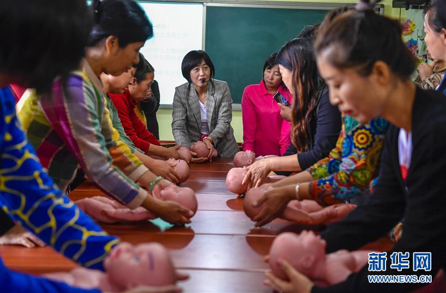 10月10日,在文安县滩里镇富管营村月嫂培训中心,老师为学员们讲解抚触婴儿的手法及注意事项。新华社记者 李晓果 摄