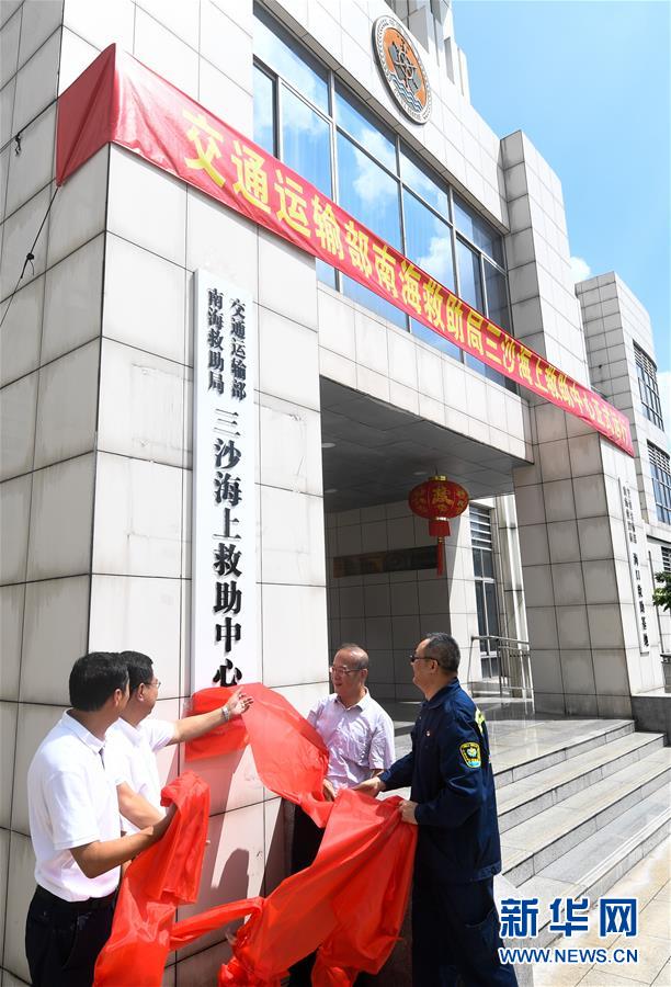 10月10日,南海救助局三沙海上救助中心在该局海口救助基地揭牌。 当日,交通运输部南海救助局三沙海上救助中心在该局海口救助基地揭牌,这标志着三沙海上救助中心正式开始运行。 新华社记者 杨冠宇 摄