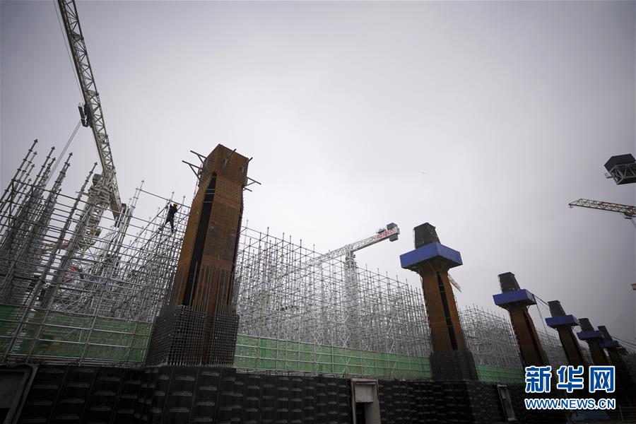 10月10日,工人在雄安站施工。新华社记者 邢广利 摄