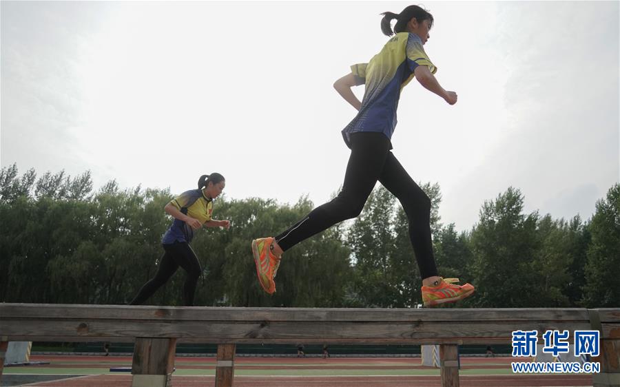 八一空军五项队队员们在进行障碍跑训练。(8月5日摄)新华社记者 程敏 摄