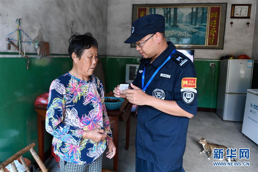 10月10日,报福镇彭湖村网格员董俊(右)上门为行动不便的老人补办老年证。报福镇充分利用全镇专职网格员队伍,上门为群众解难事、办实事。 近日,浙江省安吉县积极开展“不忘初心、牢记使命”主题教育,在下属各个街道乡镇持续开展基层大走访活动,组织广大党员领导干部下一线、破难题,实现干部群众“零距离”,聚合力为群众解困。 新华社记者 黄宗治 摄