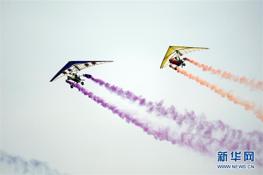 10月11日,三角翼表演队在进行飞行表演。新华社记者 詹彦 摄