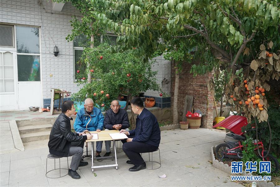 10月11日,河北省巨鹿县纪检监察干部在巨鹿县寻虎村向老党员了解村中情况。新华社记者 牟宇 摄