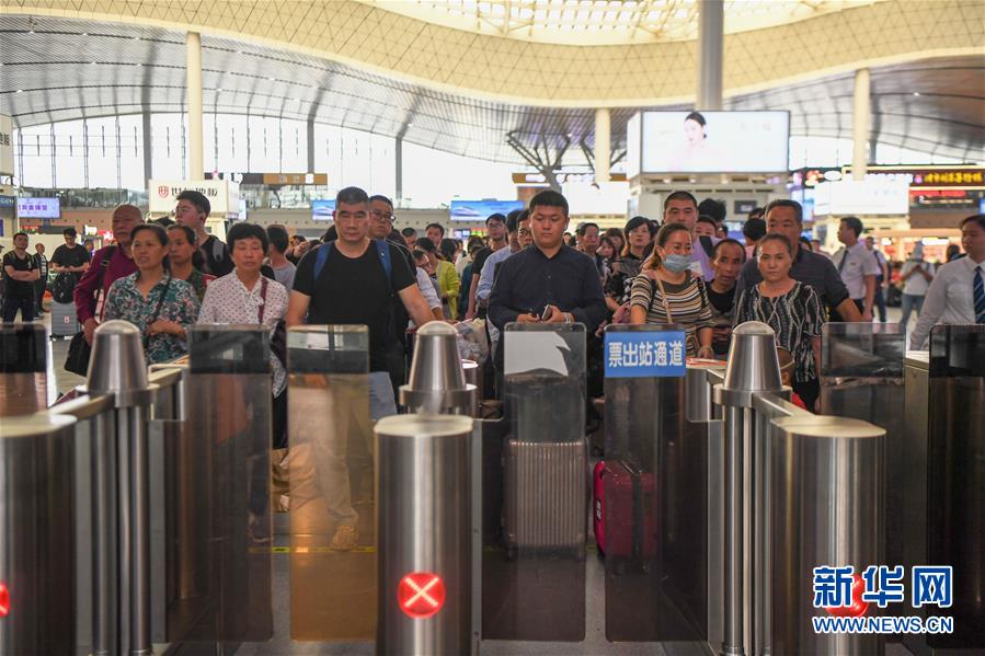 10月11日,旅客在长沙火车南站准备检票登上开往汕头的G6003次列车。 当日,15时55分从长沙火车南站始发的G6003次列车到达原终点站深圳北后将新增途经站深圳坪山、汕尾、潮阳、潮汕,于21时58分到达终点站汕头,全程耗时6小时3分。而在之前,从长沙乘坐火车直达汕头只有一趟耗时16小时37分的普铁列车。 新华社记者 薛宇舸摄