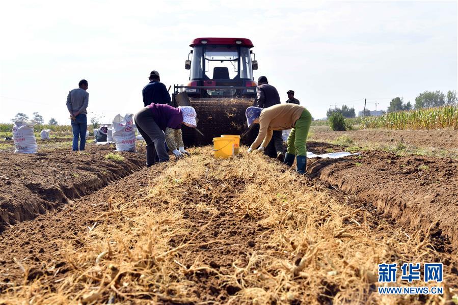 10月12日,在威海市文登区高村镇,参农在收获西洋参。 金秋时节,山东省威海市文登区西洋参喜获丰收。文登区自20世纪80年代初开始引种西洋参,目前种植面积稳定在5.5万亩左右。西洋参种植成为带动当地群众增收致富的特色产业。 新华社记者郭绪雷摄