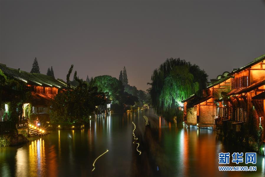 10月11日,游客在乌镇景区乘船游览。 时值深秋,各地游客来到浙江省桐乡市乌镇赏景游玩。 新华社记者 黄宗治 摄