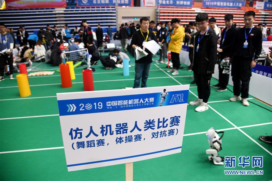 10月12日,选手参加仿人机器人类比赛。 当日,2019中国智能机器人大赛暨第二十一届中国机器人及人工智能大赛在青岛国际经济合作区开赛。大赛共设12类49种比赛项目,吸引全国178所学校的1000余支参赛队伍同台竞技。大赛期间还将举行人工智能技术培训、机器人技术及人才培养论坛等多个培训交流活动,搭建人才、技术、产业对接平台,发掘和培养中国机器人创新的后起之秀。 新华社记者 李紫恒 摄