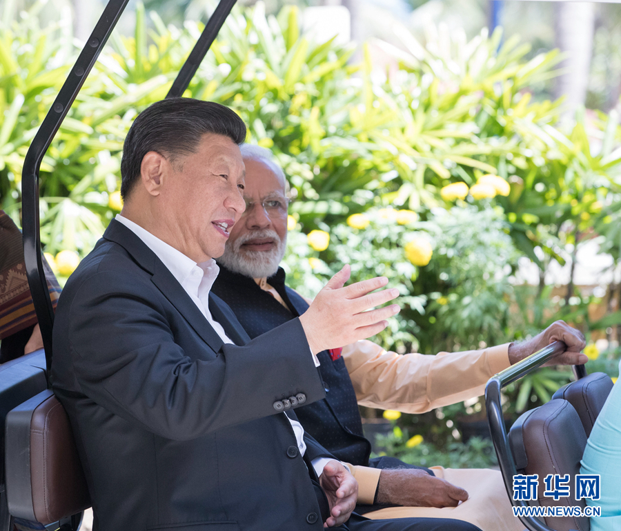 10月12日,国家主席习近平在金奈同印度总理莫迪继续举行会晤。 新华社记者 王晔 摄