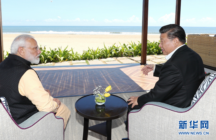 10月12日,国家主席习近平在金奈同印度总理莫迪继续举行会晤。 新华社记者 鞠鹏 摄