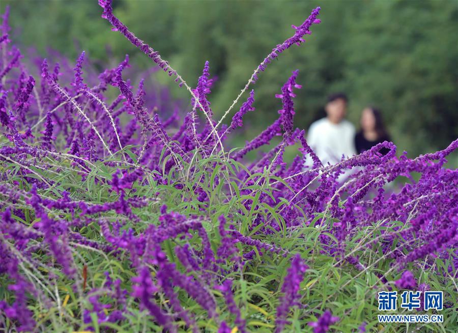 10月13日,游人在云南省曲靖麒麟爱情小镇休闲观景。 金秋时节,云南省曲靖市麒麟爱情小镇千亩花海景色迷人,吸引游人前来休闲观光。 新华社记者 杨宗友 摄