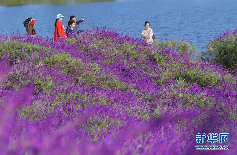 10月13日,游人在云南省曲靖麒麟爱情小镇湖畔赏花拍照。 金秋时节,云南省曲靖市麒麟爱情小镇千亩花海景色迷人,吸引游人前来休闲观光。 新华社记者 杨宗友 摄