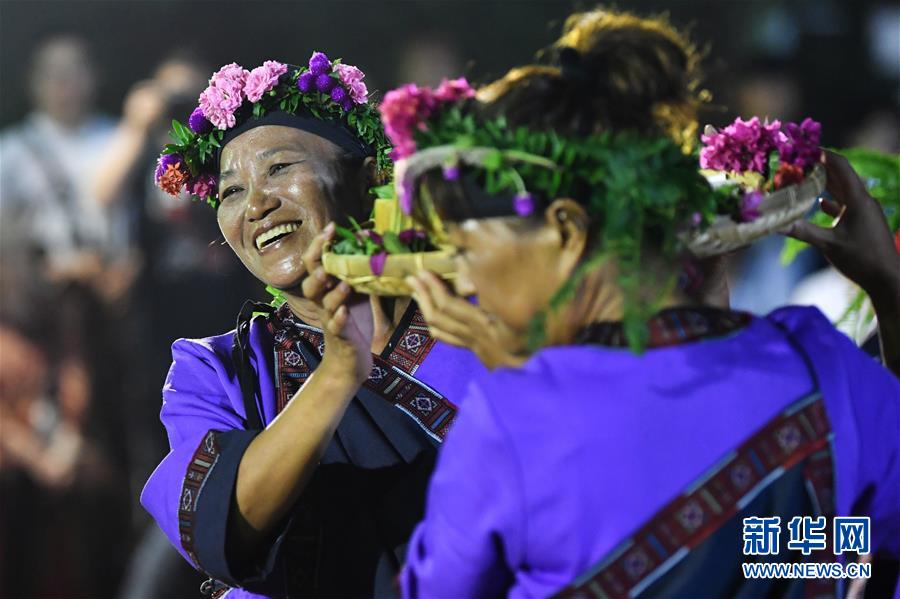 10月13日,身着传统服饰的小林部落的人们在夜祭活动上祭祀。 新华社记者 陈斌 摄