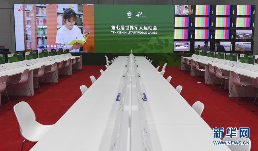 这是主媒体中心的媒体工作间(10月14日摄)。 第七届世界军人运动会即将于10月18日正式开幕,目前,主媒体中心已经运营,部分注册媒体已经陆续入驻,开始前期报道工作。 新华社记者 程敏 摄