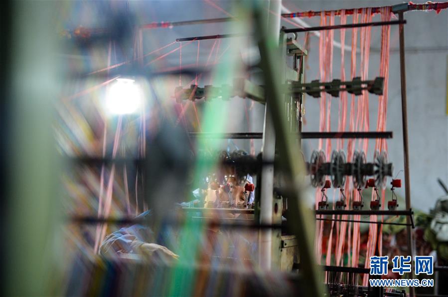 10月14日,在邛崃市冉义镇,工人在织机前工作。 四川省成都市邛崃市冉义镇素有“哈达镇”之称。冉义镇生产民族用品起源于晚清,距今已有200多年历史,产品有哈达、腰带等二十余个品种,不仅畅销国内市场,还远销尼泊尔、缅甸等国。随着时代发展,冉义镇民族用品的用料、工艺、包装与时俱进,自动化机器的使用也极大促进了产量的提高。 新华社发(唐文豪 摄)