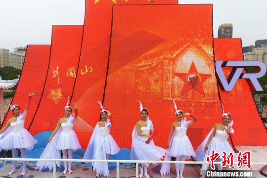 图为江西彩车上的VR标识造型表演。 刘占昆 摄