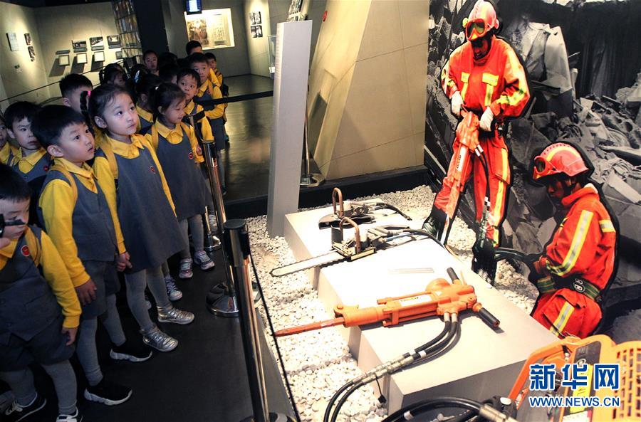 10月15日,幼儿园小朋友在消防博物馆“抢险救生”展览区参观。 当日,上海市长宁区消防救援支队开展“萌娃走进消防队”消防安全体验日活动,上海市总工会幼儿园150余名师生现场观看消防员演练、参观消防博物馆等,增强消防安全意识。 新华社记者 陈飞 摄