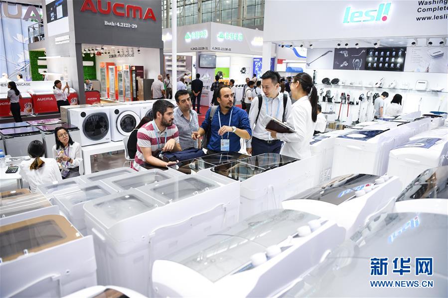 10月15日,参展商与采购商在家用电器展台洽谈。 当日,第126届中国进出口商品交易会(广交会)在广州开幕。本届广交会展览总面积118.5万平方米,展位总数60676个,境内外参展企业25642家。 新华社记者 邓华 摄