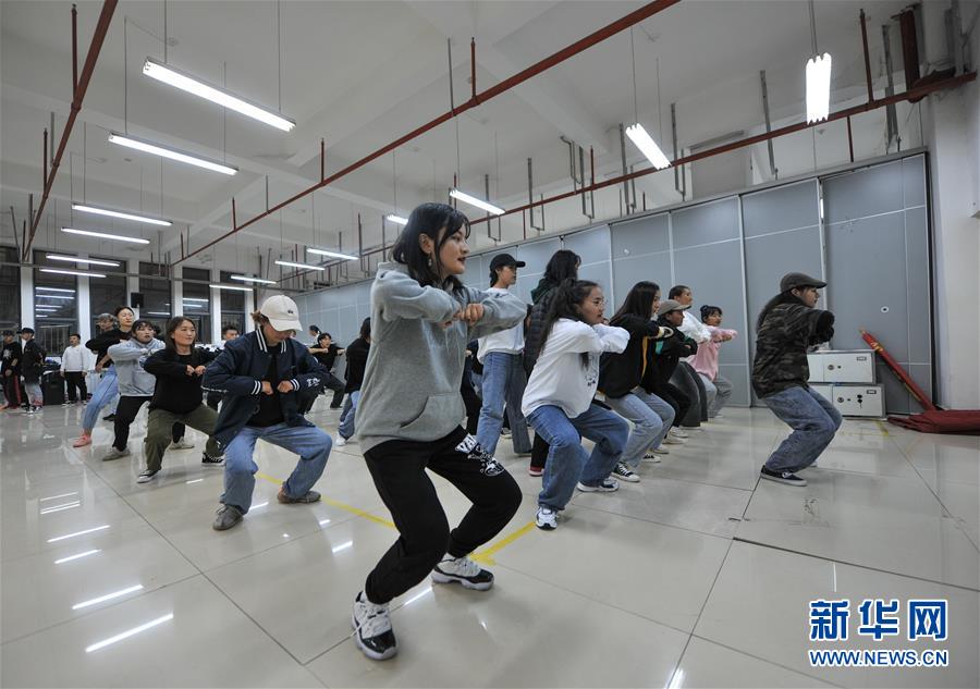 西藏民族大学街舞社团成员在练习街舞(10月9日摄)。 新华社记者 李键 摄